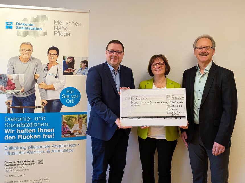 Ein herzliches Dankeschön an die Familie Auracher (EDEKA-Markt Güglingen und Brackenheim) für die großzügige Spende in Höhe von 1.000 Euro, die wir am 13. März 2026 überreicht bekommen haben.