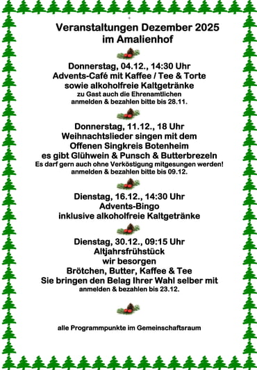 Regelmäßige Veranstaltungen im Gemeinschaftsbereich Dezember 2025