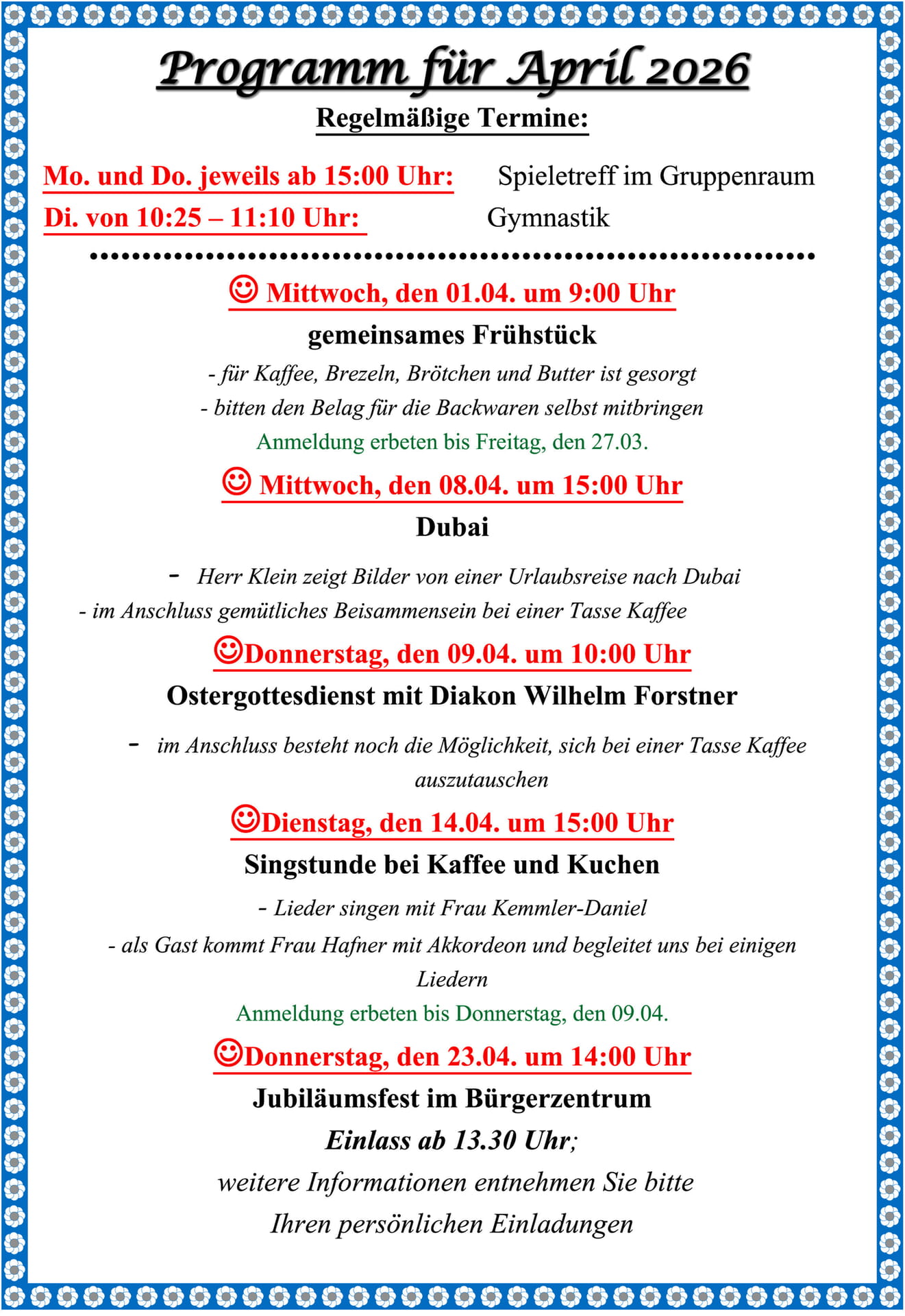 Anmeldung erbeten bis Donnerstag, den 09.04.